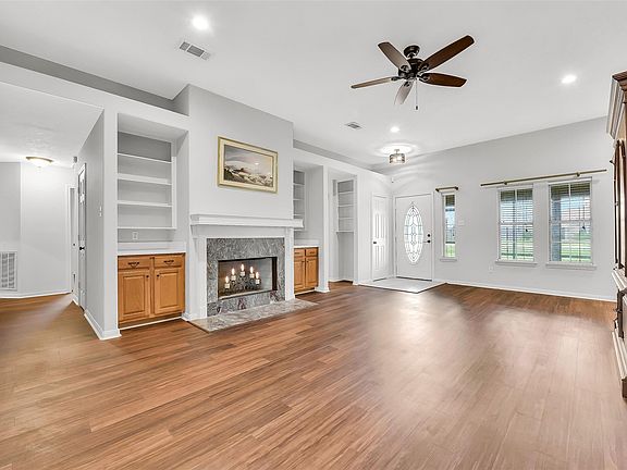 Welcome to 1911 Lafayette Ln, a spacious one story home situated on an expansive 0.55-acre lot. This inviting 4 bedroom, 3 bath home offers plenty of room inside and out, featuring both a screened-in front porch and a screened-in back porch that are ideal for enjoying the outdoors year-round. Step inside to the family room featuring a cozy fireplace, built-ins, and abundant natural light. The kitchen is equipped with stainless steel appliances, upgraded granite countertops, a walk-in pantry, breakfast nook, and access to the formal dining room. The primary suite includes a beautifully updated bath with dual vanities and an oversized frameless glass shower, and direct access to the back porch. Additional highlights include: upgraded flooring throughout, high ceilings, recessed lighting, updated guest bathrooms, neutral paint, double-wide driveway, an extended back patio, and a huge, fenced backyard. Low tax rate. Zoned to Barbers Hill ISD. Don't miss this one!