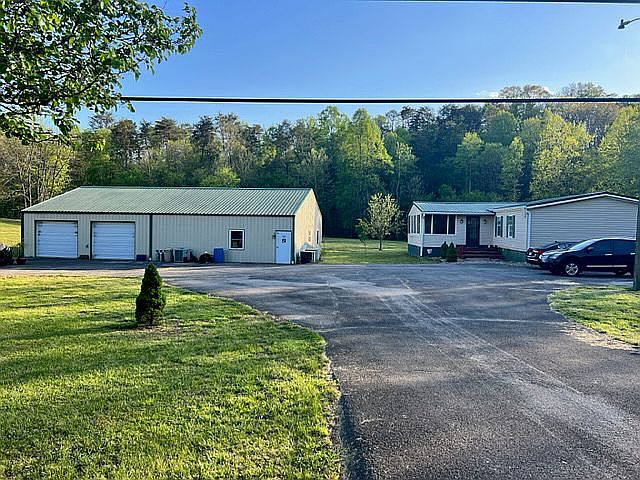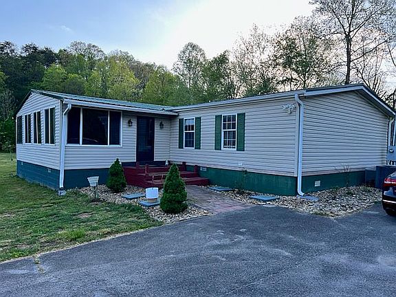 Large manufactured home with additions. This home rests on a large 7+ acre lot. Half of the lot is level grass field with multiple fruit trees, the other half is a wooded hill. The Tuckahoe creek flows through one side of the property and offers the sweet sounds of of a bustling creek. It’s located just miles from Seveirville and Downtown Knoxville, with interstate access close by. Inside is an open floor plan living room that features wood-burning fireplace with beautiful stone façade, and vaulted ceilings. The kitchen features tile flooring and lots of cabinetry. Nearby is the master bedroom which features a sitting room and en suite bathroom (separate whirlpool tub and shower.) there is a newly built sunroom with separate air conditioning system, vaulted ceiling, and plenty of natural light. There are three separate bedrooms with windows providing great natural views, all are close to the second full bathroom. There is a climate controlled commercial garage with two bays and workshop, and a large deck overlooking the yard and creek. The property is quiet and peaceful, very country, but nearby to all of the attractions that this area has to offer.