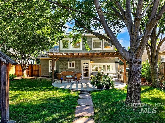 Exciting opportunity to get into one of the North End's most beloved and sought-after pockets! Treasured for its history as a Boise Trolley road, 18th Street is known for its extra-wide roadway lined with beautifully established homes. Bursting at the seams with history and potential, this charming 1900's A-Frame Cottage is calling all old-home enthusiasts who are looking for an urban lifestyle, just moments from the heart of the city. Unaltered, this home provides a fresh canvas to modernize or enjoy the character as is. The inviting interior is made up of tall ceilings, original wood flooring, and large wood windows that flood the rooms with natural sunlight. Historic charm continues from room to room through the built-in features and ornate trimwork. A spacious living and dining room offer generous space for entertaining that extends out onto the pergola-covered patio. Old-age trees and a lush lawn lead out to a bonus room addition built above the detached 2-car garage.