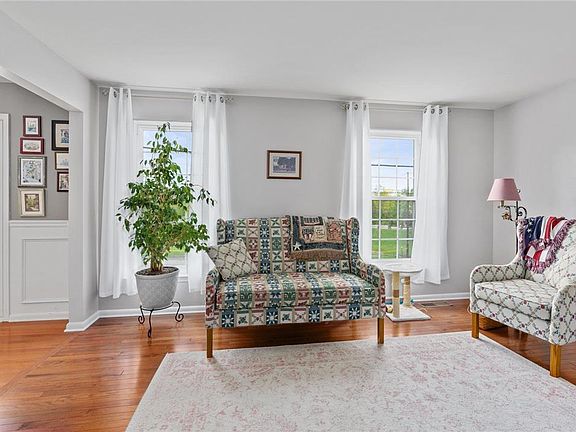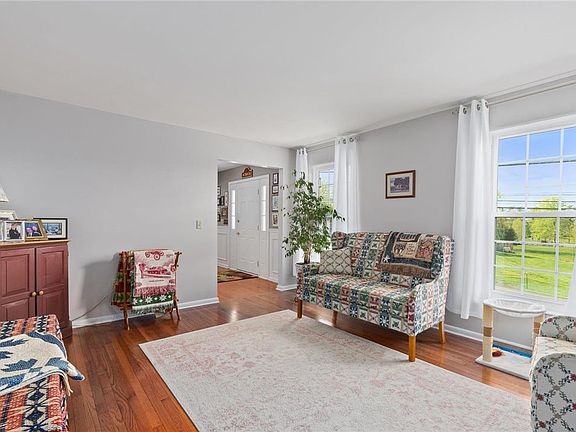 This stately Colonial welcomes you to enter it. As you step inside you will experience the love & care that the Sellers have maintained. The wood floors are a special feature of this house. An open floor plan connects the Kitchen & Family Room. From both rooms enjoy the glow of your fireplace & a view of your backyard. Walk through your patio doors to a large deck, or down the steps to a brick patio for those gatherings of family & friends. Sunshine is a visitor both morning & evening. It brightens the Kitchen & Family Room in the mornings & brings an enhanced light and glows to the Living Room & Dining Room at sunset time. Windows on the front on both levels are less than 2 years old. The high-efficiency heating system & utilities are inexpensive to maintain. This is a winning combination with the updates & out-of-town location but close to everything including major arteries & the Turnpike. You MUST put this property on your list of homes to view!
