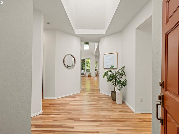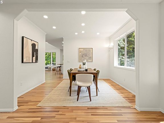 One level living on cul-de-sac nestled in the quiet greenspace. This beautifully updated home is 4,000 Sq Ft with 5 Bedrooms + Bonus + Wine Cellar & 3.5 Bathrooms. Stunning hardwood floors, vaulted ceilings and greenery from every window. Gourmet kitchen opens to great room with gas fireplace and slider to deck. Main level primary suite with spa like bathroom including heated tile floors and large curb less glass lined shower. Lower level features wine cellar, large bonus room with built-ins & storage. Two forest-facing decks—one on each level—plus a tranquil outdoor seating area tucked beneath the trees. Access to miles of Forest Heights hiking trails right outside your door. Great schools-Forest Park, West Sylvan & Lincoln [Home Energy Score = 7. HES Report at https://rpt.greenbuildingregistry.com/hes/OR10239367]