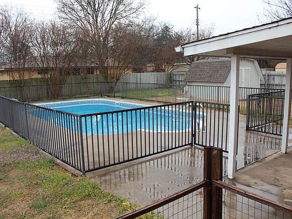 Remodeled kitchen with granite counter tops, flat-top stove, microwave, dishwasher, garbage disposal and double oven. Remodeled master bath with double sink, marble counter tops and marble shower. Large, walk-in master closet. Closet in each bedroom. Tile in kitchen, dining, laundry and both bathrooms. Engineered wood floors throughout remainder of the house. Two small closets in front entry. Large backyard with shed, in-ground pool, privacy fence plus safety fence around the pool. Gas log fireplace. Heater, hot water and fireplace are natural gas. Central heat/air. Two car garage, insulated garage door with opener. Built in shelving in master closet and living room. Wood blinds. Call or text (214)707-7996. If no answer, please leave a message.