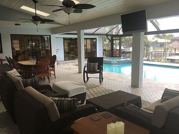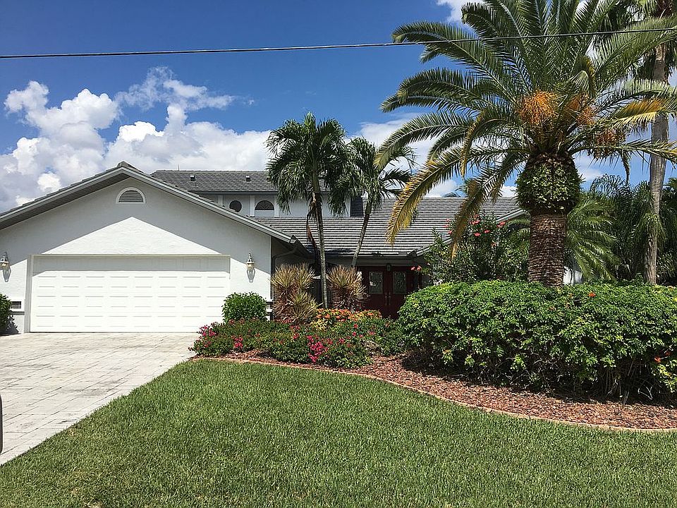 This beautiful pool home features 4 bedrooms, 4 baths and 4,000 sq ft of living area. Located in Palaco Grande, one of the nicest neighborhoods in the Cape. This 2 Story home is on the 120' wide Moody Canal. New tile roof, new house paint, remodeled/resurfaced pool, new travertine pool deck, and new pool enclosure in 2019. Tile floors, new dock, boatlift, newer A/C (2), and much more.