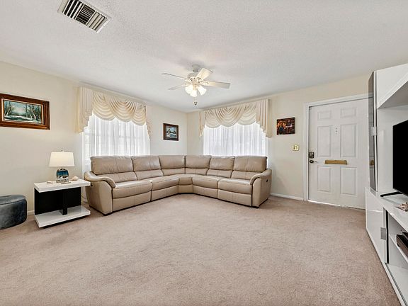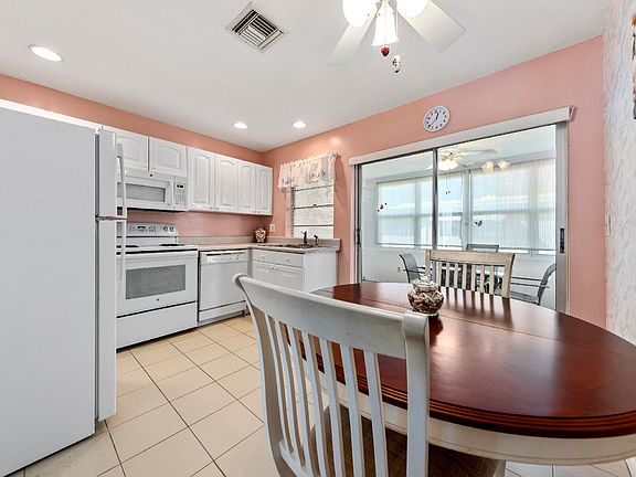 Perfect winter Hideaway....Move in condition.Home has both an enclosed porch plus screened porch. New utility doors on outside utility room. Perfect for a washer/dryer or just for storage. Kitchen cabinetry replaced and updated appliances. Windows replaced some are impact rated. Roof replaced 2011/A/C replaced 2015. Bath totally remodeled. Freshly painted double drive. Free 18 Hole Par 3 Golf, 3 heated pools and 3 active clubhouses. Minutes to ocean beaches, shopping and restaurants. Paid up recreation lease in full. Vacant and available for quick close...A Must see. Great value