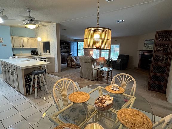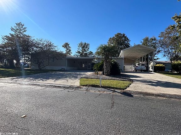 This beautiful, light, and bright Coastal Home boasts 1729 sq ft, 3 bedrooms, 2 bathes, has an open floor plan, a large sunroom, and the roof was replaced in 2020. Entering the home, you see the cozy fireplace as the focal point in the family room and the wood shutter window treatments. The property offers a spacious kitchen with lots of storage and features a large island with pull up seating and a wet bar with icemaker. It’s the ideal space to entertaining family and friends. This home has a private split bedroom layout. The primary bedroom ensuite has double sinks, 2 walk in closets, and a walk-in shower. Take in the beauty of the Alabama sunshine on the gorgeous courtyard or under the covered outdoor spaces. This expansive property includes: a shed, a 20x20 workshop, an abundance of parking with 2 covered carports, an RV Pad and RV Hook Ups with 50 amp electric and room for boat parking. This home also includes a newly replaced AC, and a separate AC dedicated to the sunroom, irrigation system with well water, newly replaced well pump, termite bond, and it is handicap accessible. This expansive property is situated on the spacious corner lot on a quiet street in the Perdido Pines section of Spanish Cove. It is an ideal location just 5 minutes from the Lillian boat launch, 15 minutes from the sugar white beaches of the Gulf of Mexico and conveniently located to the Pensacola Naval Air Base. Owners enjoy membership with a lifestyle full of amenities and low POA Dues of only $74/mo (includes trash pick-up). There is something for everyone. Amenities include: 24 hour security, two clubhouses, junior Olympic sized pool, tennis courts, basketball court, fitness facility, playground, public showers, shuffleboard court, nature trails, organized activities and group travel. If you like to relax, you can spend the day at the Spanish Cove beach or fish from the 500-ft pier while enjoying the famous Alabama sunsets in this golf cart community. Come see your new Beach home!