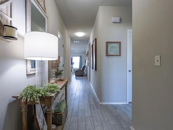 Welcome home! This charming 3-bedroom, 2-bathroom farmhouse-style home located in the sought-after Timbers addition is a beautifully designed residence featuring custom lighting throughout which enhances its warm and inviting atmosphere. The well-thought-out layout provides both functionality and comfort, making it perfect for everyday living. Enjoy the convenience of a large pantry for all your storage needs, along with a dedicated storage building in the backyard. The property is situated in a peaceful cul-de-sac, ensuring added privacy. You'll appreciate the easy access to Highway 177 and I-40, making commuting a breeze. The home boasts a spacious 2-car attached garage and elegant ceramic wood-look tile flooring that runs throughout. A large foyer welcomes you, while the covered back patio offers a perfect spot for relaxation and outdoor entertaining. Don’t miss the opportunity to make this delightful home yours!