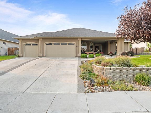 MLS# 287330 Gorgeous Ranch-Style Home in Inspiration Estates, in Kennewick. Welcome to this stunning ranch-style home offering just shy of 2,300 sq. ft. of living space. Featuring 3 spacious bedrooms, 2 bathrooms, and a 3-car garage, this property sits on over a 1/4-acre lot in one of Kennewick's most sought-after neighborhoods. Inside, you'll find tile floors, granite countertops throughout, custom cabinetry, and stainless steel appliances. The open-concept design boasts raised ceilings with elegant coffered accents in the primary suite and formal dining room. The spa-like primary suite is a retreat with a generous layout, soaking tub, walk-in shower, and dual vanities. The kitchen is designed for both everyday living and entertaining, while the cozy fireplace adds warmth and charm. Step outside to enjoy the best of indoor-outdoor living with a huge covered patio in the backyard—perfect for gatherings—and a welcoming front porch. The backyard is fully landscaped and fenced with a block wall and iron gates, offering beauty and privacy.