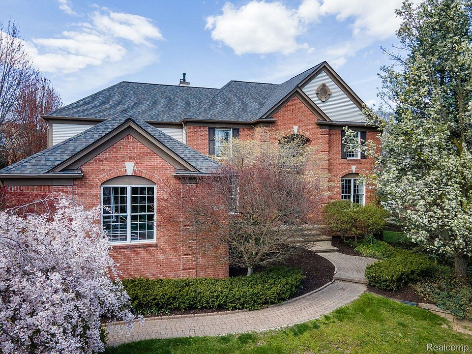 Extra ordinary! Premium setting on quiet circle backing to commons w/ez access to walking path, pool & park. Bike or walk to where you want to be. Stately brick colonial. Upstairs, downstairs inside-outside note a superb, timeless floorplan enhanced over time. 4 sizable upstairs bdrms include owners' ensuite, princess ensuite plus 3rd full bath & 2 bdrms. Beautifully remodeled owner's bath includes convenient stainless steel stackable washer & dryer. Granite island kitchen w/2 eating areas plus doorwall to deck, & 2 sided fireplace. Nearby arrival zone is more than a mudroom offering extra space, nowadays storage & convenient 1/2 bath. High ceilings, tall windows & fireplace accentuate a central great rm. Home office/library w/bay window, 2nd 1/2 bath & formal living rm offer versatile living. Formal dining rm for entertaining & holiday gatherings. Finished daylight basement offers complete living w/family rm, kitchenette, 5th bdrm, 4th full bath, and smooth surface exercise space. 3 car attached side entry garage is a must. This neighborhood is a gem with sidewalks, street lights, pool, tennis, volleyball, basketball & playground. Be in sooner than later and enjoy a summer without leaving home.