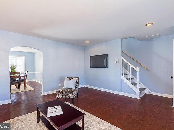 REMARKABLE PORCH FRONT RENOVATION WITH 3 FINISHED LEVELS & APPROX. 1,600 SQ. FT. OF LIVING SPACE! Hardwood floors throughout the upper levels, spacious living room, separate dining room w/ chair rail, Chef's kitchen w/ ss appliances & granite counters, upper level w/ 3 large bedrooms & 1 full bath, finished attic with 4th bedroom, finished basement w/ family room, half bath, and large laundry/storage area and large fenced yard. Located close to Good Samaritan Hospital and Morgan State University