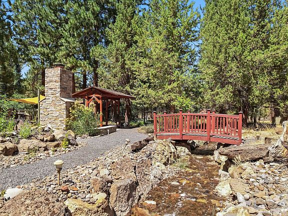 Escape to a luxurious 1-bedroom unit with a separate living room and dining area, tucked away on Bend's desirable West side, just past Shevlin Park. This unit is attached to a main home situated on seven acres, offering plenty of space and privacy for your getaway. The master suite features a spacious bedroom with a comfortable queen-size bed and a small smart TV. The bathroom includes a spacious walk-in shower, and for those who like to sleep in, the main windows have blackout shades. A walk-in closet with a washer and dryer is tucked away for your convenience. The living room is equipped with a large smart TV with direct TV, offering most of the premium movie channels. The kitchenette includes a convection microwave, coffee pot, electric kettle, and a small fridge freezer. A round dining table provides space to enjoy a quiet meal or a morning cup of coffee. The unit has its own private patio with seating for four, surrounded by a beautiful water feature with a massive metal bear sculpture, waterfall, and manmade creek, creating a peaceful park-like setting. The outdoor area includes a Traeger grill with pellets and a fire pit, perfect for outdoor cooking and relaxation. Situated on seven acres, this property offers a private entrance and a separate street or building entrance, ensuring a secluded and tranquil environment. This property accommodates a maximum of two persons and does not allow pets. The unit is equipped with ductless air conditioning and heating, an indoor electric fireplace in the bedroom, and safety features such as a smoke alarm, carbon monoxide alarm, fire extinguisher, flashlight, and first aid kit. Satellite internet is available for your convenience.