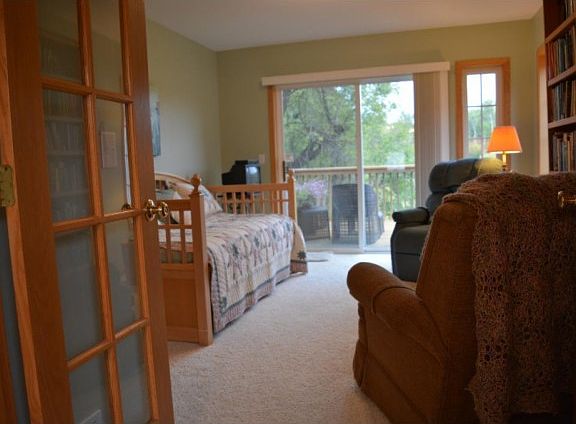 Exceptional opportunity to enjoy rambler walk-out townhome priced under $200K! All living facilities on one level, with lower level unfinished awaiting your custom design. Upper level deck & lower level walk-out patio with fabulous nature/pond/wildlife views. Dramatic windows in living room bring the beauty & light of outdoors in. Open design & high ceilings create a welcoming & spacious environment. French styled doors open to Sunroom/Bedroom. Galley kitchen open to dining & living areas.