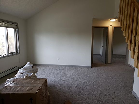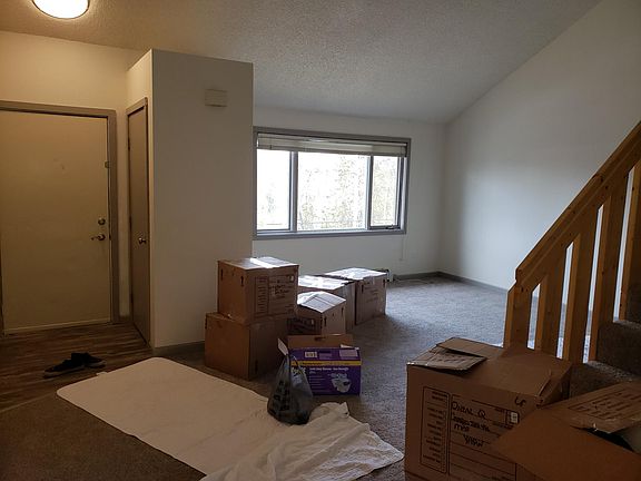 2 bedrooms, 1 bathroom + BIG loft - Would work great as an office/play room/master "bedroom" **AVAILABLE MAY 1ST** - On-site management! - Lawn care / snow removal taken care of by management - Security deposit is $1,450 - Tenant only pays electric for their unit ($75 a month/avg) - Pets on STRICT approval (fees/deposit negotiable) - Lease lengths negotiable (12 month leases or longer are preferred) Renovated Summer 2018 to include: carpet, cabinets/counter tops, trim, bathroom vanity and medicine cabinet/paint/fan, vinyl flooring, appliances, tamper proof outlets/switches with covers (no more saggy plugs!), baseboard heat covers - Vaulted ceilings - Internet/cable TV ready in the living room - Secure mailbox cluster with outgoing mail slot and 2 parcel boxes - Shared laundry room - 2 new Maytag commercial grade washer/dryers (coin-ops - Security door (2 sets of brand new locks) - Security camera system installed for safety - New boiler installed November 2018 HOT Water! - 3 minutes outside of Eagle River & Fred Meyer - Fire department and Fire Lake Elementary (K-6th grade) is 2 minutes away - JBER is a 15-20 minute commute - Plenty of parking (free) - outlets for block heaters) - Mountain view from the back yard, perfect for fires and BBQs, etc. All terms negotiable