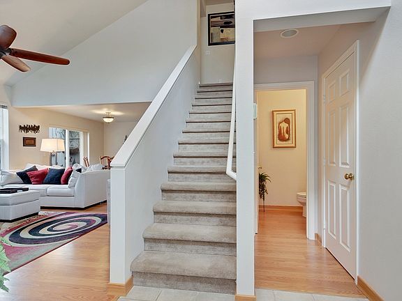 Beautifully maintained 1480sq ft townhouse style condo. Soaring vaulted ceilings and open concept with lots of light! Tons of storage everywhere. Large kitchen with ample counter space. Newer kitchen appliances stay. Upstairs you'll find the large master suite with his and hers closets, 2 more generous bedrooms, and more storage! Private back patio area. 2 car attached garage. Close to freeways, shopping, and bus line.
