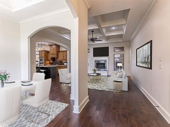 Beautiful custom home in sought-after Chenal community. This 4br 2.5ba home is backed to green space. Open floor plan w/ 12' coffered ceilings, 8' doors, wide hardwood planks & cozy fireplace. Kitchen ft. granite counter-tops, custom cabinets, stainless appliances and large island. 4 spacious bedrooms. The master ft. trey ceiling w/ recessed lighting and large master bathroom w/ over-sized walk-in closet and built-ins. Enjoy quite summer nights in your screened in patio. Lawn care provided through HOA fees.