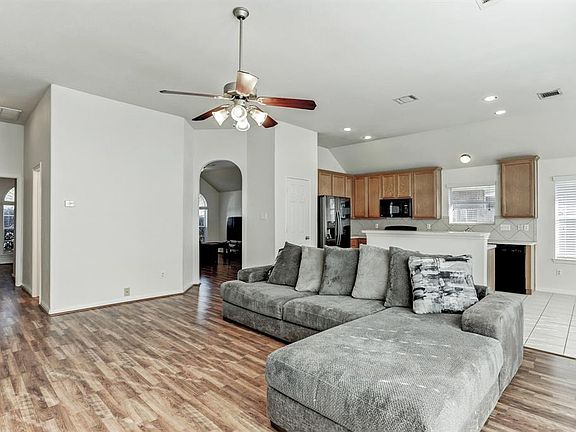 Gorgeous light and bright one-story home located in private gated community offers lovely, neutral paint palette and outstanding open floor plan with the kitchen opening to the breakfast nook and comfortable living area with gas fireplace. Highly functional living spaces add to the appeal of this lovely home. Large master suite is complete with tray ceiling, dual vanities, whirlpool tub, separate walk-in shower, and huge walk-in closet. Two other sizable bedrooms split from the master offer maximum privacy. Study (currently playroom) can be used as a fourth bedroom. Formal dining opens to cozy den or second living area. Sizable fenced backyard provides ample room for entertaining family and friends. Walking distance to the neighborhood pool and community park. Excellent curb appeal in a great neighborhood. This location cant be beat with easy access to I-45, Grand Parkway, Hardy Toll, Exxon campus, shopping and great restaurants! NO FLOODING. Community retention pond works well!