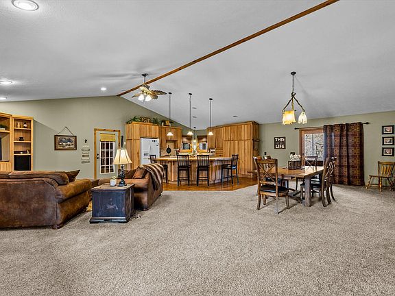 Welcome to Eagle Point Estates in the picturesque Eagle Rock, where this stunning property awaits you only steps away from Table Rock Lake! Nestled on just over 2 and a half acres of lush landscape, this captivating home features 3 bedrooms and 2.5 baths, accompanied by a spacious 3-car garage. Relaxation knows no bounds with a huge wrap-around porch, an extended deck and a large screened-in porch all offering beautiful views. Step inside to discover a warm rustic ambiance complemented by a large living area, and a kitchen featuring an island and bar seating, perfect for entertaining any number of guests. Descend to the basement living room adorned with a special wine cellar and fireplace, adding to the cozy atmosphere. Movie nights reach new heights in the theater/family room equipped with a sound system and a magnificent 7x12 projection screen! With its proximity to the lake, this residence epitomizes lakeside living at its finest, offering a harmonious blend of comfort and convenience.