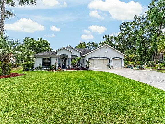 GOLFERS AND WATER ENTHUSIAST PEACEFUL RETREAT. This spacious 3/2/POOL Home with 3 car garage on .64 AC. comes with SOLAR electric and an additional wooded building lot providing sought after PRIVACY. This is where a safe and friendly community and nature coincide, backed up to a large tree lined County maintained greenbelt. This charming community comes with its own private Rainbow River Beach Park five minutes from this home. This park includes private beach, covered picnic area, bathrooms, kayak/canoe launch area. Five minutes away is a county maintained park, with beach, boat ramp, picnic area, restrooms. The park has available kayaks and tubes for the river. Also five minutes away is the Rainbow River State Park. A great walking and animal friendly neighborhood. Inside, this home features large open concept layout. That seamlessly connects the kitchen, dinning, and living areas. Enjoy the natural light from 6 oversized 8 ft sliding doors, The spacious primary suite includes dual walkin closets, a luxurious bath, with double vanities, a garden tub, walkin shower, a private water closet. The second bath conventiently opens to the pool area for easy access. Step outside to the screened lania and enjoy your private inground pool. The home comes with 26 solar electric panels keeping utulity costs lower, averaging $116 a month. Community center offers pool and tennis courts, fitness center, billards and walking paths and a restuarant. From your lania enjoy the view of wildlife, like deer and turkey and the occassional Bald Eagle. Approximately 15 golf courses, 2 rivers and the Gulf of America ( Mexico) are within 45 minutes. Check all your boxes.