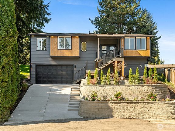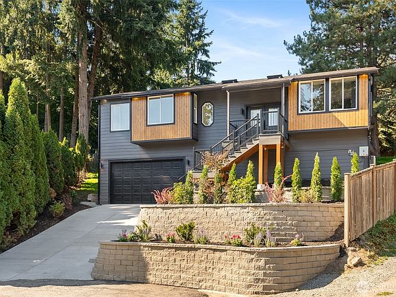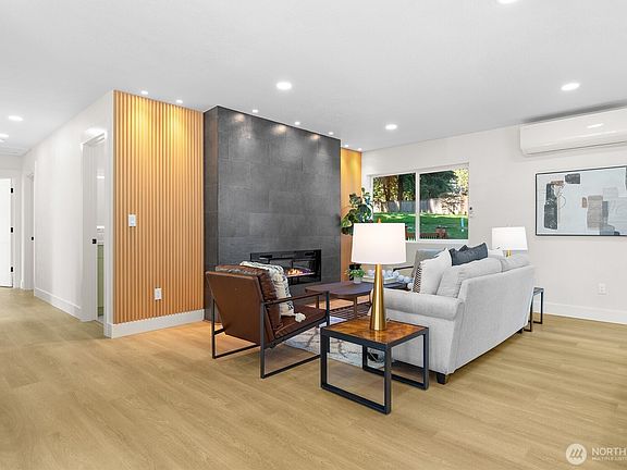 FULLY REMODELED Bothell retreat in the award-winning Northshore School District. This 3-bedroom, 2.75-bath split-level on a third of an acre offers modern comfort and flexible living. The main level features a remodeled kitchen with quartz counters, stainless appliances, sleek cabinetry, and an open living area with custom entertainment center, office/den and electric fireplace. The bay-windowed primary suite includes a walk-in tile shower and stylish finishes. The lower level provides a second living area with fireplace, bedroom, and laundry. Updates include remodeled baths, luxury vinyl flooring, fresh paint, new trim, upgraded heating, new A/C, and brand-new septic with warranty. Pre-inspected, move-in ready, includes a home warranty.