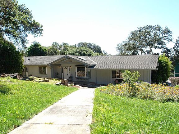 Spacious single level country home set on an acre with majestic oak trees and a view of the tree covered mountains. This peaceful home is located at the end of the road providing privacy. Light and bright describes the interior with skylights and sun tunnels creating natural light. Exposed wood beam ceiling's in the kitchen and family room. Kitchen is equipped with a gas Viking Stove, large Island with sink/disposal, custom cabinetry and recessed lighting. Eat in kitchen area or dine in the dining area with a beautiful bay window. Wood burning stove in the family room, wood burning fireplace in living room. 3 full baths, walk in storage/linen closet, laundry room with cabinets/sink and a door leading to the outside. Master bedroom has a sliding door leading to the outside, master bathroom has custom built in cabinetry. Recirculating system for hot water. Detached two plus garage is insulated and has built in cabinetry/work bench area. Plenty of parking for an RV/Boat. Pasture area.