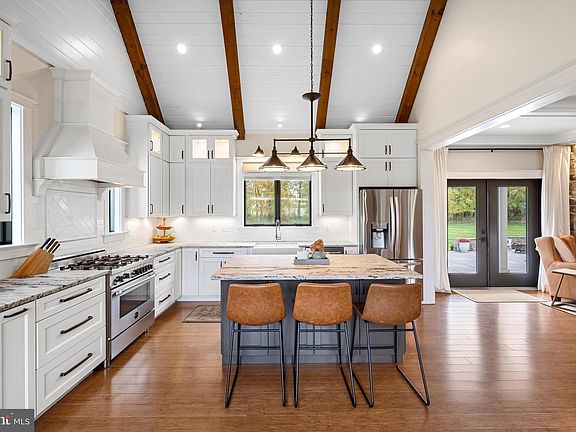 Superb rare custom home on 3.5 acres with non-HOA. Fiber optic internet! On-trend modern farmhouse finishes and styling throughout with this newer 2017 construction. Quality finishes include Pella windows, LP Smartside siding (similar to Hardiplank), shiplap, barn beams, custom 7 piece trim throughout, Trex front porch and so much more. Main-level primary plus a second bedroom on main (currently used as office). Luxury kitchen with cathedral 23 foot ceiling with timber beams and shiplap. High-end leathered granite counters, professional 36" Bertazzoni gas range. Breakfast or sitting area off kitchen with bar/coffee bar. Located just off the kitchen is the family room with coffered ceiling and stone fireplace. Primary bedroom with extra deep tray ceiling and large dual walk-in closets. Luxury primary bath with open shower, herringbone inlay and dual shower heads, dual vanities. Full front and rear porches with 750 square foot patio and stone walls. Two bedrooms with two baths upstairs with an open loft ideal for play or media area. Finished lower level with 5th bedroom and 4th full bath (in-law suite), recreation room, additional study, gym area and ample storage. Scenic views backing to large farm for privacy and idyllic country life. Whole house generator! Easy access to downtown Purcellville, grocery stores, restaurants. A true unicorn so don't miss it!