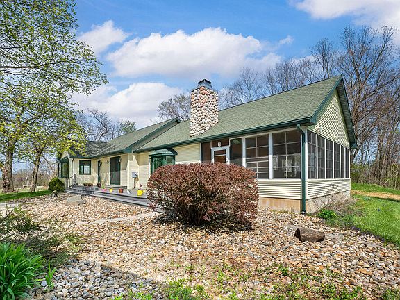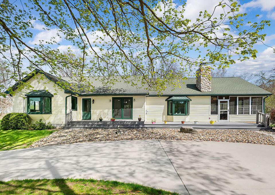 Your Private Retreat Awaits in Galien, MI Just 90 minutes from downtown Chicago and only 30 minutes from the University of Notre Dame in South Bend, this stunning property in Galien, Michigan offers the perfect blend of peaceful seclusion and convenient access to the city and campus life. Nestled on 8.69 acres of breathtaking natural beauty, this home welcomes you the moment you turn down the drive—like you're arriving at your very own private retreat. Step onto the expansive screened-in porch and take in panoramic views of the lush property that surrounds you. Whether you're sipping morning coffee or unwinding in the evening, the sounds of nature and the serenity of the landscape create an atmosphere of total escape. Inside, the open-concept layout with soaring ceilings and skylights brings the outdoors in, filling the home with warm, natural light. A beautiful stone fireplace is the perfect centerpiece for cozy Michigan nights, while the sun-drenched front deck invites you to soak up every moment of those perfect Midwest days.