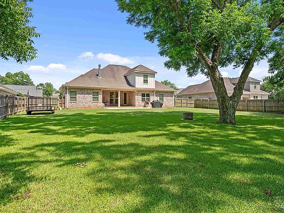 Meticulously maintained home in FAIRHOPE, AL. This 3 bedroom, 2.5 bath GOLD FORTIFIED home with an amazing 3067 square feet offers a BONUS ROOM and extra LARGE YARD of .73 acres. With 10ft & 9Ft ceilings, the OPEN floor plan seamlessly connects the living, dining, and kitchen areas. NEW acacia wood flooring in the living areas, granite and 2" blinds throughout. The kitchen has stainless steel appliances, GAS RANGE, custom hood, subway style backsplash, plenty of cabinet space, walk-in pantry and a breakfast bar. Spacious primary suite featuring an ensuite bathroom with walk in tile shower, garden tub, 2 walk in closets and double vanity. An additional bedroom on primary side could also double as an office. The additional 2 bedrooms with walk in closets are on opposite side of house and offer a jack-n-jill set up with double vanity, granite counters, with toilet and shower/tub combo enclosed for extra privacy. The BONUS ROOM upstairs can be used as an office, bedroom or even playroom. Step outside to discover the expansive backyard, perfect for hosting barbecues, gardening, or simply unwinding on the covered patio with v-groove wood ceiling accent. The neighborhood also offers a large stocked POND for fishing. Conveniently located in Fairhope, residents of this community enjoy easy access to shopping, dining, entertainment, and top-rated schools. Plus, the stunning beaches of the Gulf Coast are just a short drive away, offering endless opportunities for recreation and relaxation. Don't miss your chance to make this Fairhope gem your own!