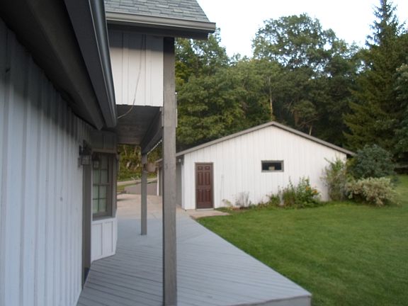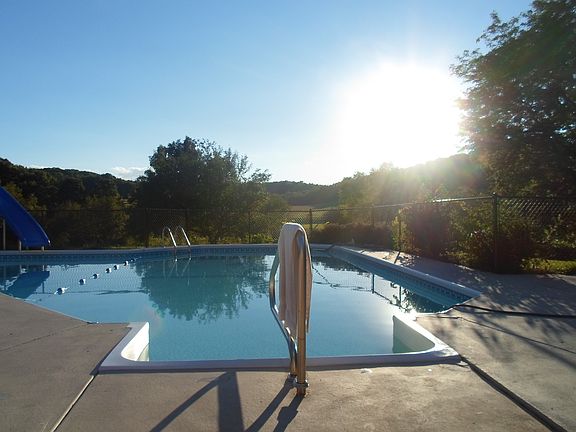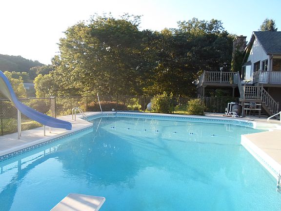 Vacation home year round. Located in a beautiful rural setting with features such as 7 apple, 2 pear trees and a spring with a bridge flowing through the property. If your a hunter the deer are right in your own yard. The view from the 40` pool is spectacular. A 40`x16` deck wraps around the home. There is a 3 car detached garage, 40`x 30`with separate openers. The interior of the home boast 2 stone fireplaces, a wood burning stove, large built in sauna, kitchenette off the pool area and a tiled shower with many other great amenities. I`m sure it will be your dream home of a lifetime!