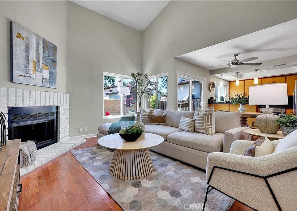 Prepare to fall in love with this beautifully updated townhome, recently remodeled and improved, superbly located in a quiet well-maintained community nestled close to rolling hills in the desirable Orange Park Acres area. Improvements include remodeled bathrooms, new Quartz topped vanities, new tile floors and shower surrounds, new plumbing fixtures throughout, new Kohler toilets, new electrical plates/switches, new lighting, new ceiling fan, new carpet, new interior paint and more! This home lives like a Single-Family Residence and is conveniently located just steps from the community pool area. Step inside and soak in the light filled interior with an open floorplan, soaring vaulted ceilings, gorgeous luxury vinyl floors, updated lighting and fixtures, and a neutral interior setting the stage for an ideal living environment. Gather with loved ones around the cozy brick fireplace in the warm and welcoming living room which is open to the dining area with direct access through the sliders to the back patio creating a perfect indoor-outdoor living space for relaxing and entertaining. The handsome kitchen is blessed with sleek granite countertops and a full granite backsplash, warm wood cabinetry, updated hardware, new faucet, new stainless-steel appliances, wine rack, and breakfast bar with custom pendant lighting. Travel up the stairs to the bedroom level with built-in linen cupboards for extra storage, new carpet, and dual primary suites. To the right is a spacious bedroom suite with a private view balcony, 2 closets, including a walk-in closet, and a beautifully remodeled bathroom with a custom Quartz topped vanity, new faucets and fixtures, new porcelain tiled shower surround, and new porcelain tile floors. The second primary suite has also been beautifully updated with the same sleek and striking features including Quartz topped bathroom vanity, updated faucets and hardware, gorgeous tile floors and shower surround, and updated lighting. The spacious backyard has been refreshed with new colorful landscaping creating an amazing sunny space for BBQing and entertaining with family and friends. The prized direct access 2 car garage boasts desirable Epoxy floors. Just steps from pool and community green-spaces, close to shopping, dining, local schools, easy 55 Frwy and Toll Road access, hiking & biking trails throughout El Modena Open Space, just minutes from John Wayne Airport, Downtown Orange, Irvine Regional Park, Santiago Canyon, and local beaches.