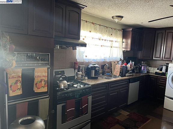 Nestled in a serene, family-friendly neighborhood on the San Leandro border, this well-loved 1825 sq ft property is the perfect place to call home! An inviting living room with a wood burning fireplace greets you as you enter, along with windows that let in plenty of natural light. Adjacent to the living room is a spacious eat-in kitchen, boasting newer cabinets and flooring, and enough counter space for any home cook to prepare family meals. Two large bedrooms, offer plenty of closet space and are complimented by a full bath with a tub. The primary bedroom, with its own full bath, offers a calm space to relax after a long day. The family room, large enough to host a game or movie night includes a gas fireplace and provides access to the outdoor space. The outdoor space, with plenty of room to entertain, is further enhanced by a shed with a hot tub to relax, store your items, or even convert to an ADU! Other features include a long driveway that adds an extra touch of convenience. With the potential to convert back to a duplex, this home is perfect for multigenerational living! Come see for yourself why this home is a must-have and add your own personal touches to make this home yours.