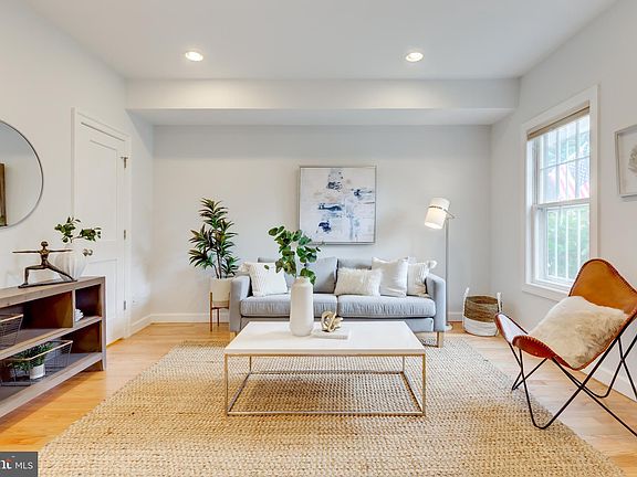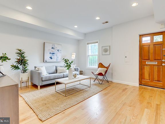 Gorgeous trees and a happy, blue façade welcome you to this semi-detached row home situated between Logan, U Street and Shaw. Beautifully renovated from top to bottom, this delightful home boasts hardwood floors and tremendous, natural light. A striking blue fireplace surrounded by built-in shelves anchors the formal dining room. With two windows and a door, the cheerful kitchen has stainless steel appliances, a clean white palette and a utility closet housing the washer/dryer. Off the kitchen, a sunroom is perfect for a playroom or office. The owner's bedroom is airy and bright, thanks to a vaulted ceiling and windows on two sides. The en-suite bath has a rain shower. A brick patio on the side of the house leads to the backyard and covered, two-car parking with an automatic garage door. Within a few blocks, you can see a show at the 9:30 Club, shop at local boutiques or national brands, enjoy a night on the town, and dine at fantastic restaurants. The metro is one block away.