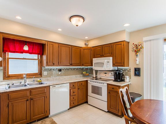 Move in ready twinhome with 3 bedrooms & 2 bathrooms. Kitchen updates include: New countertops, backsplash, recessed lights. New light fixtures throughout. Lots of storage. Oversized double garage. Located on quiet cul-de-sac 1 block from Bringewatt Park. NO HOA fees and no specials.