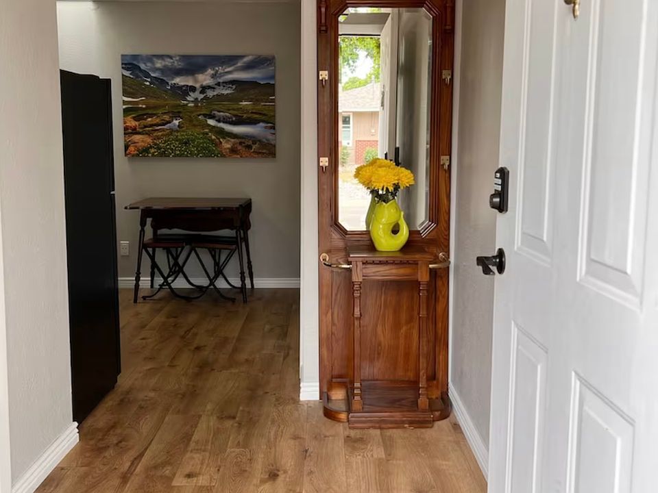 This is a fully furnished suite that is connected to the main house but is very private. It is suitable for 1-2 people. It has its own entrance, wood floors, a large bathroom, queen size bed, kitchenette, large closet, a small couch and small table for dining. The kitchenette comes with all the basic cooking necessities, including a two burner hot plate. The suite also has a TV in the sleeping area so that you can log in to your entertainment apps. Internet and all utilities are included in the monthly price. You will have a designated parking spot, on the street directly in front of the suite. There is no smoking allowed in the suite. If you are going to smoke, it must be outside. Please shut the door to the suite when you go outside so smoke does not go into the suite. There are no pets allowed. There is no washer and dryer in the suite but there are multiple laundromats nearby. Suite must be maintained by renter. That includes regular cleaning of the space. Everything that is needed to clean the suite (broom, mop, cleaners) will be provided.
