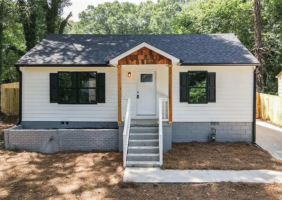 Beautifully renovated 1945 ranch bungalow. New roof, siding, HVAC, water heater, flooring, doors, windows, plumbing, electric and more! Enjoy this open floor plan from the living room with electric fireplace to the dining area and kitchen which features new stainless-steel appliances, shaker-style cabinets with tile backsplash and quartz countertops. There is a new washer and dryer waiting for you. Excellent attention to detail throughout the home, from the center hall bathroom with vanity and soaking tub/shower to the extra-large closet in the master. A newly landscaped, sodded and fenced-in backyard with firepit is the perfect place to entertain. This level lot with an extra-long driveway can accommodate your guests, boat, or RV. Conveniently located to schools, MARTA East Point Station, close proximity to Hartsfield-Jackson Atlanta Airport, downtown Atlanta, near interstates, retail center and restaurants. House is visually staged.