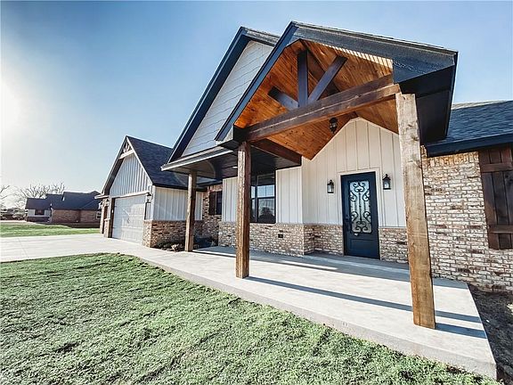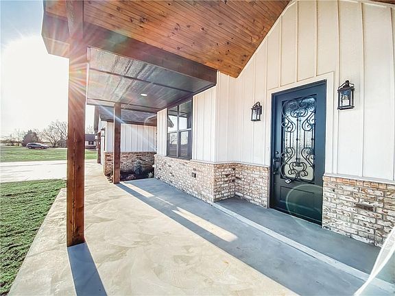 New construction Tuttle home, out of city limits on 1.7 acre lot!! You're immediately greeted by this homes large distressed beams, & 8ft tall farmhouse steel door, with opening glass window. An open floor plan home with a large floor to ceiling fireplace in living room. There is a gas line stub on back porch for a grill, great for entertaining. The kitchen is spacious with stainless steel appliances, large copper farm sink, & unique copper faucet. Next to the kitchen is an appliance nook with floating shelves, across from that is a tidy desk area. Perfect to keep all the clutter out of view from the main areas. The primary bath has a large drop in soak tub, large walk in shower, along with his & hers vanity. The primary bedroom has a box ceiling with color changing LED lighting, and features a perfectly large shared closet. Extra room could serve as bedroom, study or office. 3 car garage features 8ft tall garage doors for those with taller vehicles. Come check out this home ASAP!