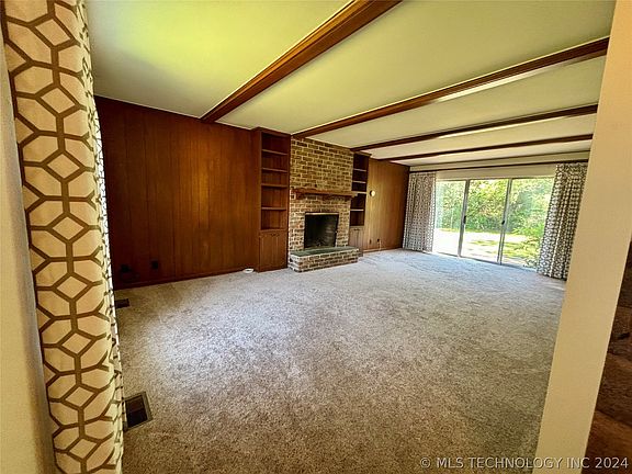 Step into a piece of architectural history with this mid-century modern home, offered for the first time by its original owner. Located on a serene, tree lined dead-end street, this 3 bedroom, 1 1/2 bath property provides a blend of classic design and contemporary living coming in at 1620 square feet. Living room with sliding glass doors to fenced back yard along with woodburning fireplace. Formal dining room with access to galley style kitchen, updated with granite countertops, ample storage and cozy breakfast nook. 1/2 bath downstairs adjoins oversized laundry room with so much storage. Upstairs holds 3 generous sized bedrooms, adjoining two with a Jack and Jill bath. Upstairs has great closet space in all bedrooms along with walk in access to a floored attic. Drive in to your oversized double car garage that includes more storage and side door access to backyard. This home has been well maintained with roof replaced 4 years ago along with new carpet throughout. East of the home is wooded acreage so you get the feel of seclusion right in town. Easy access to US 75 and just blocks from OSUIT.
