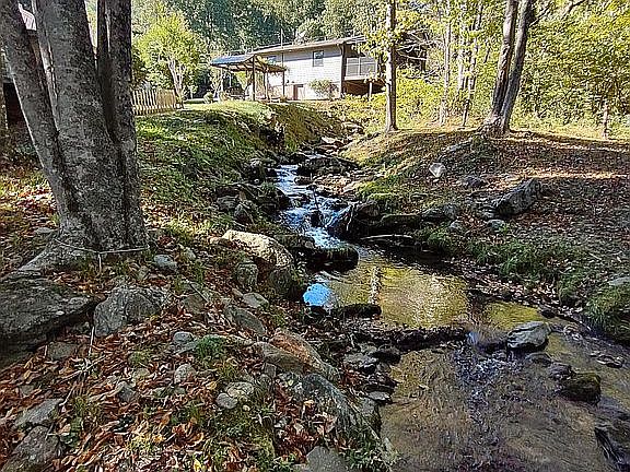 Paradise by the creek! Don't let the size fool you, the character of this home will overwhelm you. Located just a few miles out of town (paved all the way, very easy access) and situated on a bold creek with soothing sounds. One bedroom one bath in the main house with a full kitchen and a large bonus room/sleeping area with half bath over the garage with living room and kitchenette downstairs plus a one car garage. If you are looking for a home and office space combined, this home would be perfect. There is also a large storage building on the property matching the house. In between is a very nice deck with a fire pit and plenty of room for entertaining, not to mention the additional wrap around deck to enjoy the creek. Cross the bridge to the other side of the creek and just sit and enjoy, make a fire or pitch a tent. This is a very unique property and would make someone an excellent home full or part time or to use for a vacation rental. Optimum internet. No drive bys as home is rented from time to time, must have appointment