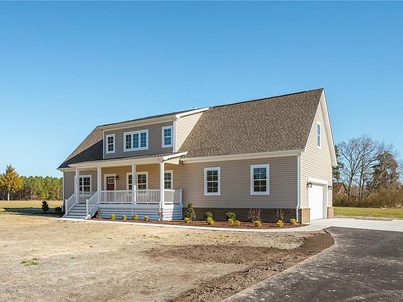 Don't miss this opportunity to enjoy beautiful country living on acreage in South Suffolk! This home is a quality new construction home with great features that include a huge covered deck, 1st floor primary suite, 2 bedrooms upstairs and a huge bonus room over the oversized 2 car garage. Also included are granite counter tops, tile bathrooms, luxury vinyl plank flooring, 42" cabinets, a generous trim package, stainless steel appliances including fridge and so much more! Home is nearly complete.