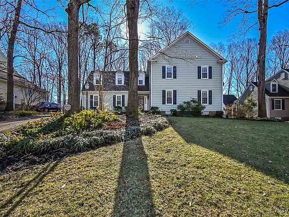 Don't miss your opportunity to tour this gorgeous home within walking distance to Godwin high school! Located in the Gayton Forest West neighborhood, this spacious Colonial offers a blend of classic charm and modern amenities. The welcoming foyer leads to multiple living areas, including a large great room with dual entrances featuring large windows, new carpeting and access to rear patio. Just steps away you'll discover the wet bar with ample storage, beverage fridge, and a nugget ice maker – perfect for entertaining. The expansive sunroom with custom windows provides serene views of the large, fenced backyard, ideal for outdoor activities. A cozy sitting room with a brick gas fireplace flows seamlessly into the eat-in kitchen, making this space perfect for family gatherings. The formal dining room offers plenty of room for hosting guests, while the office/living room with French doors adds versatility to the floor plan. The first floor also includes a spacious laundry and utility room with convenient access to the side yard, which is fully fenced and offers an excellent area for pets. Upstairs, you’ll find a generously sized primary bedroom with a walk-in closet and en-suite bath. Three additional spacious, freshly painted bedrooms are also located on the second floor, all featuring beautiful hardwood flooring. A walk-up attic provides plenty of storage options. The property also boasts a huge detached two-story garage, offering ample space for storage downstairs and workshop or craft room above. The home's aggregate driveway extends to the side of the property, providing parking for both homeowners and guests. Don't miss out on this beautiful home with exceptional living space, convenient location, and incredible potential!