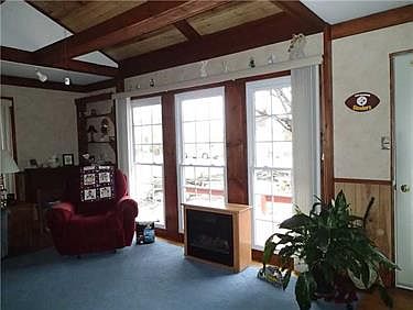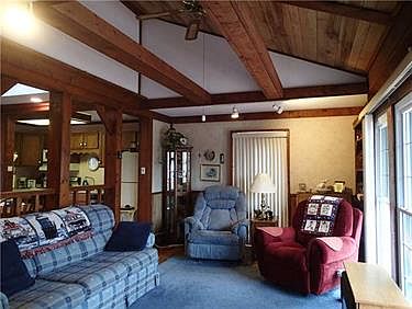 Unique Home, Vaulted ceilings with wood beams and skylights add to the charm of this ranch style home, great front deck area for sitting and covered rear porch provide great entertaining spaces! Master has walk in closet and a half bath, full basement with great potential, 2 car covered parking, extensive landscaping. Newer windows, Air Cond 3 yrs old,newer kitchen counters, whole house vacuum, exterior freshly painted 6 months ago, exterior shed for storage. Don't miss this great starter home!