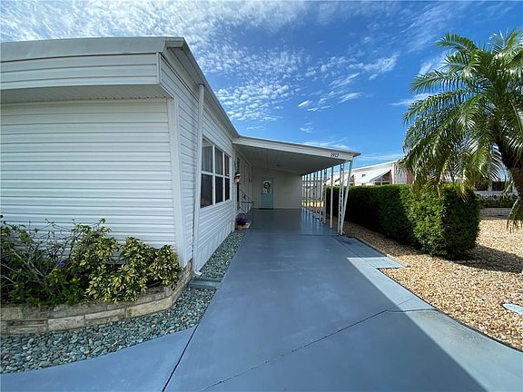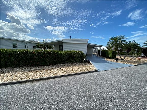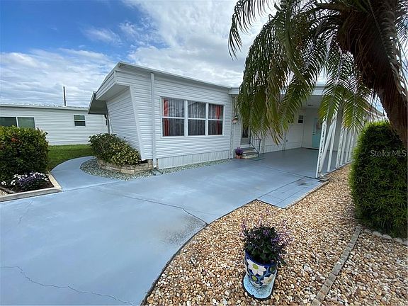 Price Reduced - Motivated Seller. Nicely furnished 2BR/2BA Single Wide Mobile Home in the very active 55+ Trailer Estates. The second bedroom is part of the large bonus room housing both a queen and twin bed. Attached to the home is a large block room for laundry and storage with a full bath -- great for clean up after the beach or golf. The AC was replaced in 2015, with the blower-motor replaced in 2020 with a 5-yr warranty. The Membrane Roof was installed in 2003 with a lifetime guarantee. Roof & AC Receipts/paperwork provided with sale. Automatic sprinklers help keep the yard green. This well-maintained park boasts a marina with great rates for their residents. It also has low storage fees for boats and campers. The park features a large heated pool and spa, woodshop, shuffleboard courts, bocce ball courts, horseshoe pits, pickleball, exercise room, craft room, card room, large and small halls, beach pavilion, post office, and laundry. The very reasonable annual fee of $1,175, billed as part of your property taxes, includes the park Post Office, Volunteer Fire Department, Cable TV, Common Area Taxes, Community Pool, Internet, Manager, Pool Maintenance, Recreational Facilities, and Trash.