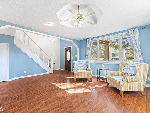 This darling 3 bedroom, 1.5 bathroom, almost 2000 sq ft residence is nestled in the heart of the quaint town of Elwood. This inviting home features a spacious layout, perfect for families or those seeking extra space. The living area is filled with natural light, creating a warm and welcoming atmosphere. The kitchen boasts modern appliances and ample cabinet space with handmade cabinets, making it a joy to prepare meals. On the front porch you can pull up a chair and relax on your new, low maintenance composite deck or step out back to enjoy a large fully fenced yard, ideal for entertaining or relaxing with loved ones. A few notable updates include: NEW pex plumbing (March 2025), new HVAC induction motor (March 2025), new roof (2020), and new vanity in upstairs bathroom, to name a few. Just a quick golf cart ride to local parks, schools, shopping, and restaurants, this home offers both comfort and accessibility.