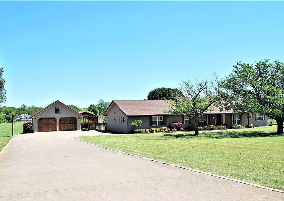 Gorgeous, updated 1 story ranchette w double master, 4 bedrooms, 3 and half baths on 3.27 acres within city limits (city sewer & water). Easy access to I35E&W, & Rayzor Ranch. Hundreds of thousands of dollars of extensive and elegant updates: two master suites, an oversized 2 car garage, in-ground gunite diving pool, covered flagstone patio, kitchen gutted and updated with all new cabinets, granite, new backsplash, new flooring, new appliances, tankless water heater; updated bathrooms, metal roof, new windows, extensive exterior updates. Huge, established trees and landscaping. Includes a 2 stall horse barn with 2 tack rooms & loafing overhang. No HOA and horses are permitted. Chickens and coop can stay.