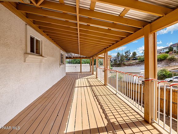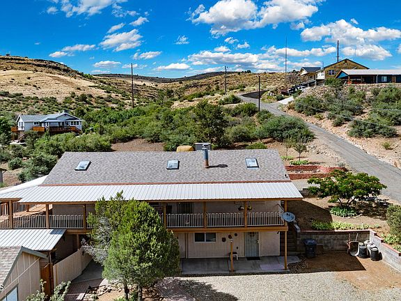 Nestled in the serene Yavapai Hills, this unique property spans three parcels, totaling 0.40 acres, offering breathtaking views of the surrounding hills. Enjoy the scenic beauty from the extensive covered deck space, perfect for relaxing or entertaining. With over 2,350 sq. ft. of living space, this charming home features vaulted ceilings and skylights that create a welcoming and open ambiance. One of the standout features of this property is the separate and fully-furnished basement living space, perfect for use as a rental opportunity or a mother-in-law suite. This additional living area offers privacy and versatility, making it an excellent income generator or comfortable space for extended family.