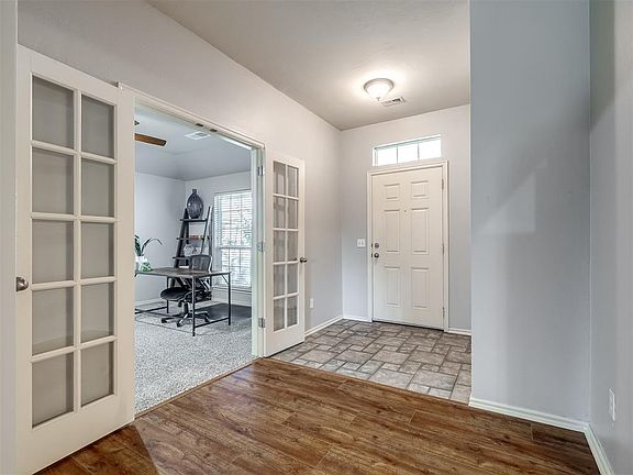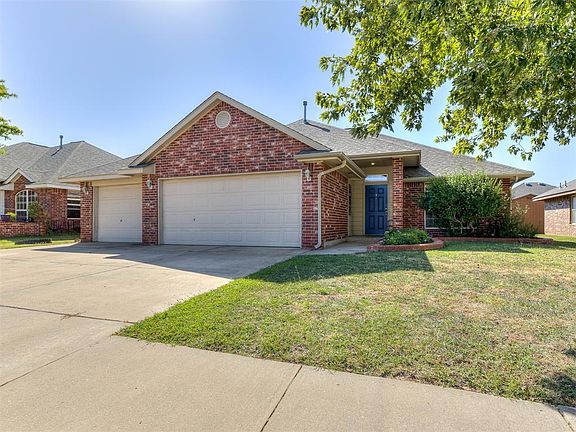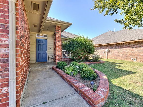 Welcome to Copper Creek and discover this well-maintained 3 car garage Edmond home, featuring 4 bedrooms and 2 baths (or 3 bedrooms with a study). Offering nearly 2000 square feet of living space with lots of natural light. Upon entering, you are welcomed by a study with glass French glass doors and an open entryway. This home has been recently repainted inside, has new carpet in the bedrooms including new flooring in the living area and hallways. The kitchen appliances were updated a few years ago, and the sellers are open to negotiating the refrigerator, washer, and dryer with a good offer. The kitchen is ideal for cooking enthusiasts, with ample counter space, abundant cabinetry, and an island. Cozy up by the fireplace in the living area during cooler seasons. Each bedroom provides ample space for furniture. This is a split floorplan and the primary bedroom accommodates a king-size bed and includes a vaulted ceiling. The attached bathroom hosts a large soaker tub, separate shower, and dual vanity. Relax on the covered back porch for grilling, enjoying coffee, or supervising play in the backyard enclosed by a privacy fence. Don't forget this home does come with an inground storm shelter located inside the garage to keep you safe during the seasons. This home has been well taken care of, is spotlessly clean and it shows. With this price refresh, you don’t want to miss out. Schedule your showing today.