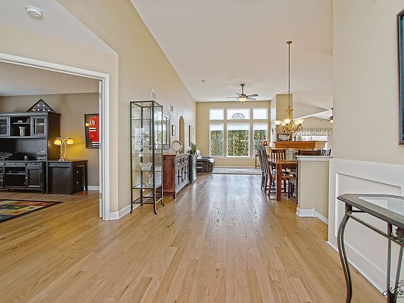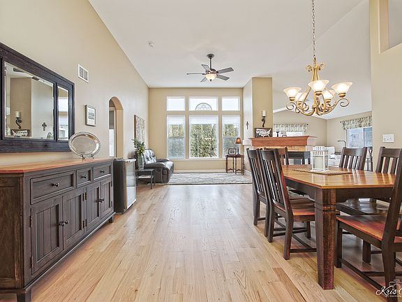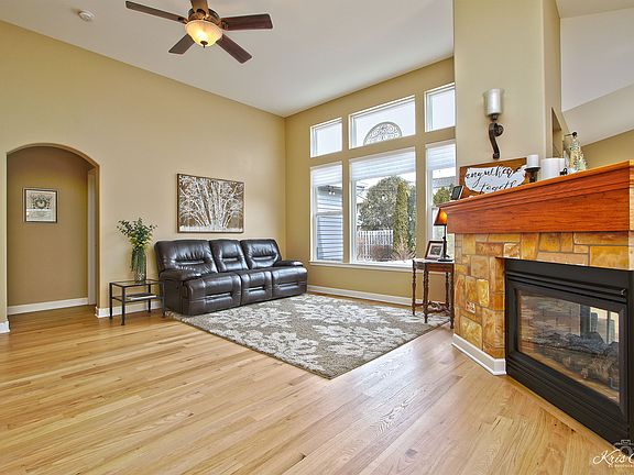 Immaculate, upgraded ranch home features an open floor plan, 12' and cathedral ceilings throughout plus lots of large windows for maximum sunshine inside. Gorgeous refinished white oak flooring throughout the main level. 3 sided fireplace in the great room can be enjoyed from all rooms in the main living space. Beautiful kitchen features newer granite countertops, tile backsplash and stainless steel appliances. The primary suite offers vaulted ceiling in the bedroom, a walk-in closet and an incredible updated luxury bath with tall white vanity, granite countertop, gorgeous tile, separate shower and a soaking tub. A full unfinished basement doubles the living space and features rough-in plumbing. Sliding glass doors walkout to the stamped concrete patio and the private backyard. The 3 car attached garage is a dream. Close to shopping. Roof new in 2020. Water heater new in 2019.