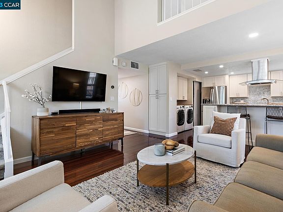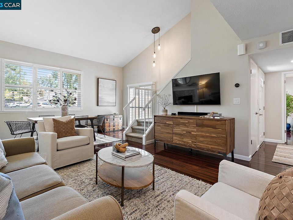 Gorgeous updated townhome in Sunset Park! This beautiful 3 bed/2 bath home offers vaulted ceilings, engineered hardwood floors, recessed lighting and Central AC. The spacious living/dining area features a cozy fireplace, vaulted ceilings and slider out to a private patio. The updated kitchen has granite counters, LG stainless appliances and custom cabinetry. Indoor laundry and detached 1-car garage. Additional side patio can be used for BBQ/storage. Well-maintained community includes pool, clubhouse, tennis and pickleball courts. Wonderful location close to shopping, dining, Iron Horse trail and BART, not to mention just minutes from downtown Walnut Creek. Coveted Walnut Creek schools and no rental restrictions. A must see!