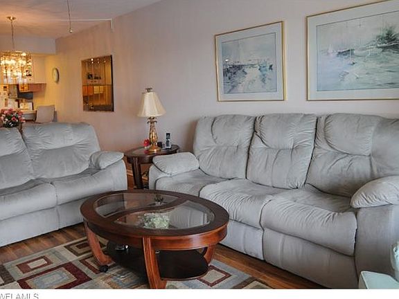 Spectacular unobstructed views of the wide 200' intersecting canal and river with direct access to Gulf of Mexico. Beautiful 2 bed/2 bath - newly updated second floor condo with wood laminate floors, appliances and AC, TURNKEY. Near new living room furniture with couches and TV with King size bed in master bedroom. This hard to find second floor unit has it all! Large lanai to enjoy and relax with cool drink, comes with sliding impact resistant glass and large windows for lot's of light. Enjoy a new heated community pool. Plenty of dock space, bring your boat, no bridges! New roof on building. Low HOA fees $355/month in this 55+ active community. Great location, near park, shopping and restaurant. Comes with covered carport. Won't Last, hurry - this is the good life!!