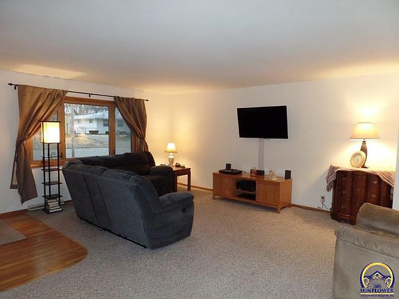 Well-maintained rancher on quiet street (Topeka West schools)! Detached over-sized single garage with extra parking and privacy-fenced back yard. Open floor plan with formal Dining and spacious eat-in Kitchen (kitchen appliances stay). Basement features Family Room with wood burning stove/counter/2nd frig (so handy for entertaining), super-size 3rd Bedroom (non-egress window) and 3rd Bath. Replacement windows by prior owner, roof replaced 2012 and newer furnace. Seller offering AHS home warranty.