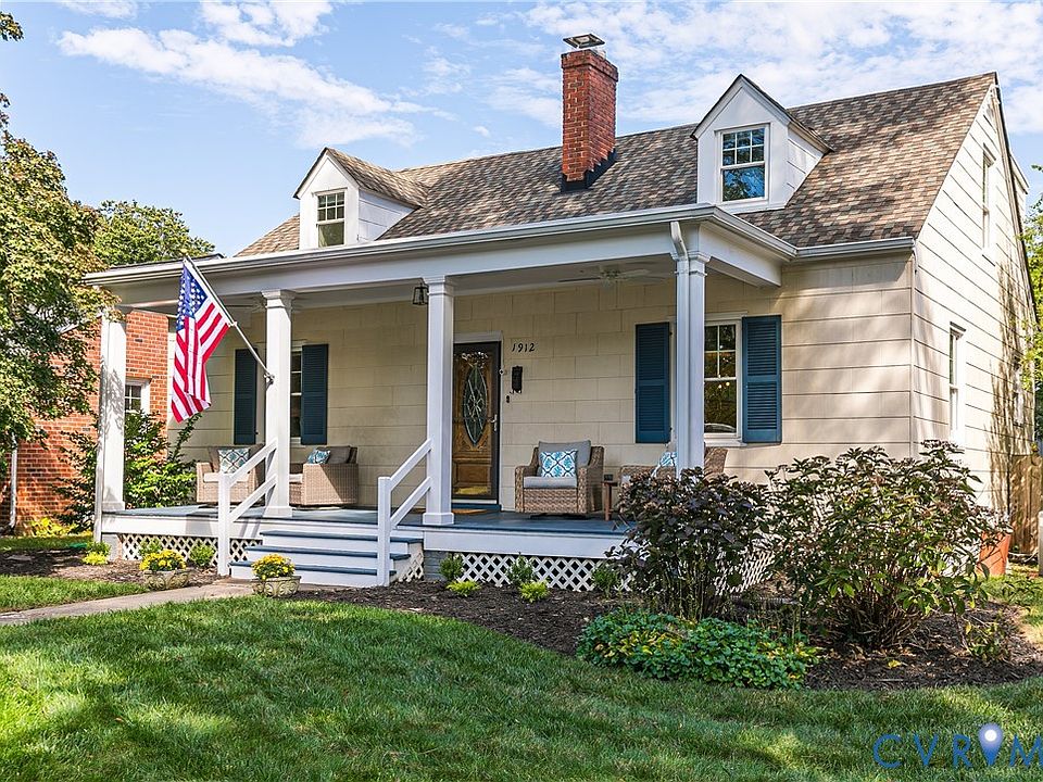 Welcome to this beautifully renovated four bedroom, two bath cape in Rosedale, where classic charm meets modern upgrades in one of Richmond’s most central and convenient neighborhoods. A wide full front porch welcomes you inside, where an arched entryway with coat closet opens into a large, open living room featuring a brick gas fireplace—perfect for cozy evenings or entertaining guests.