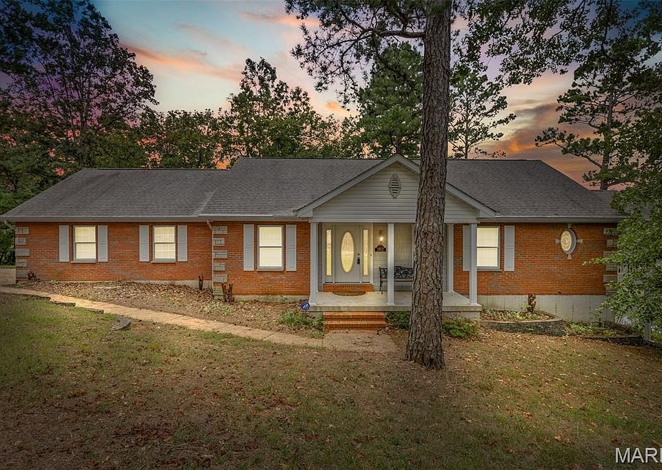 Lakefront living in Terre Du Lac! This brick and stone accented ranch sits on beautiful Lac Shayne and is built for comfort, entertaining, and year-round enjoyment. The backyard features terraced retaining walls with natural foliage for privacy, leading down to your own concrete boat dock. Multiple outdoor spaces include a covered deck, covered patio, and an open deck overlooking the water.
